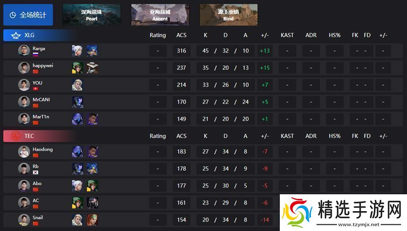 第二场,XLG 2:0 TEC,前EDG教练午后和选手浩东加盟之后的TEC,在目前参加过的比赛中表现均甚如人意,浩东虽然获得了队内最高的总击杀27,但TEC全员KD为负, 来自俄罗斯的拉加获得了全场最高的45总击杀。